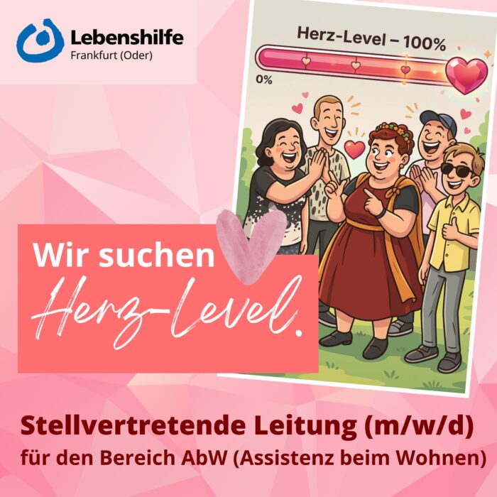 Die Lebenshilfe Frankfurt (Oder) begleitet Menschen mit Beeinträchtigungen auf ihrem Weg zu mehr Selbstbestimmung – und Sie tragen dazu bei, Strukturen zu stärken und Qualität nachhaltig weiterzuentwickeln.