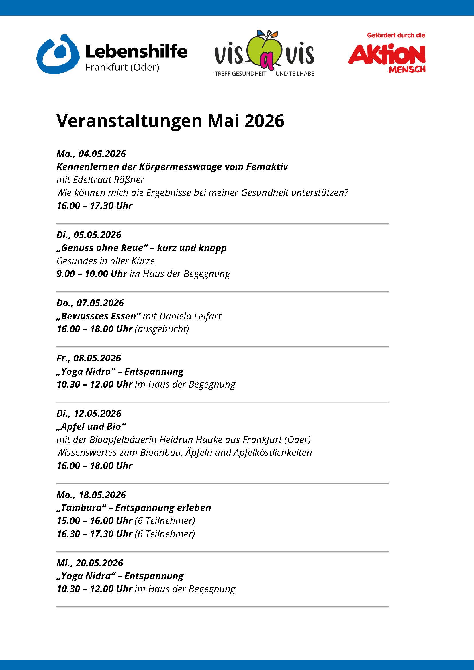 vis à vis – Treff Gesundheit und Teilhabe