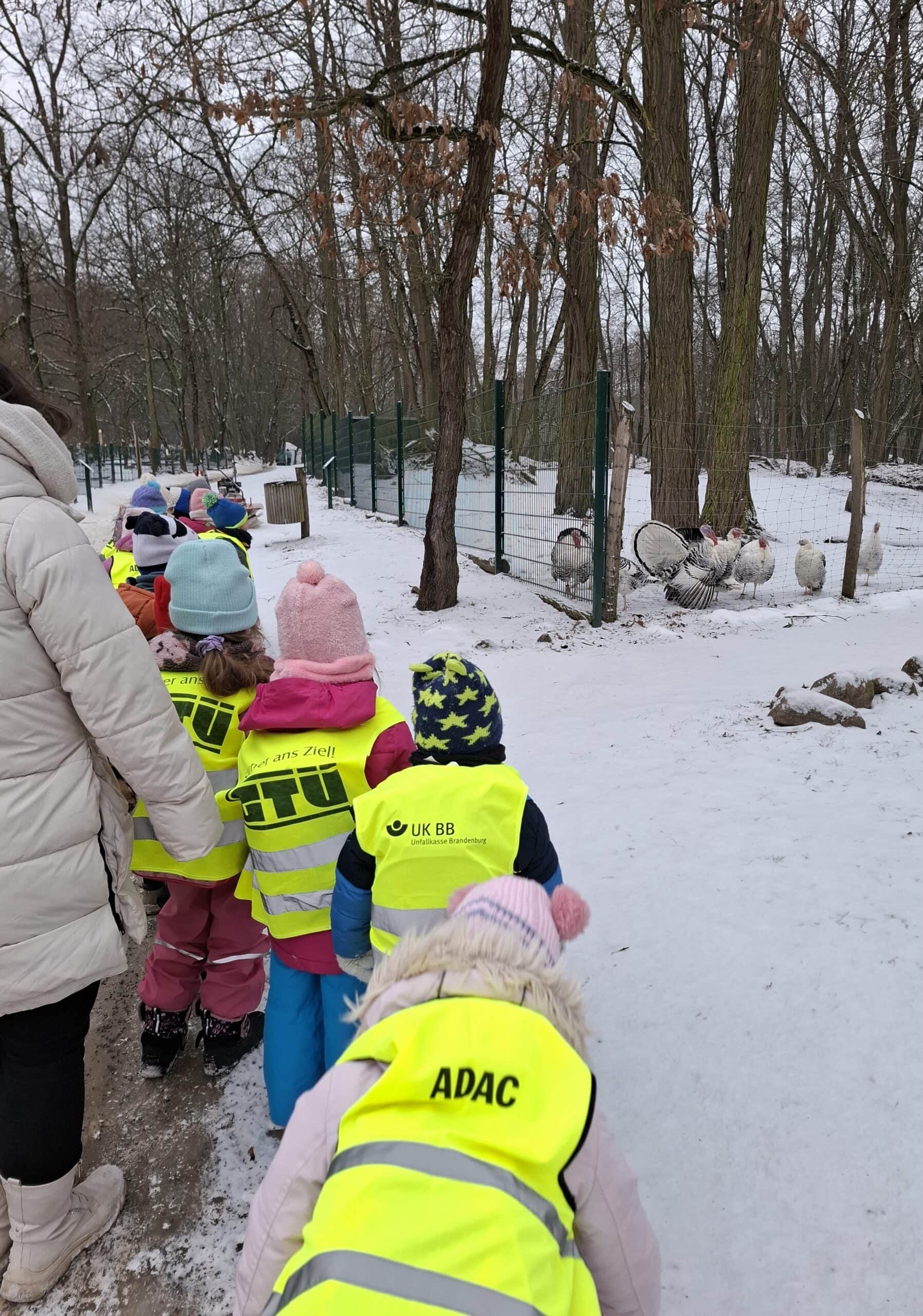 In der Wildparkschule erfuhren die Kinder allerlei Interessantes über Winterschlaf, Winterruhe und Winterstarre. Auch an die kleinen Tiere wurde gedacht: Für die Vögel bereiteten die Kinder in der Kitaküche Futterringe aus Körnern und Kokosfett für den Garten zu.